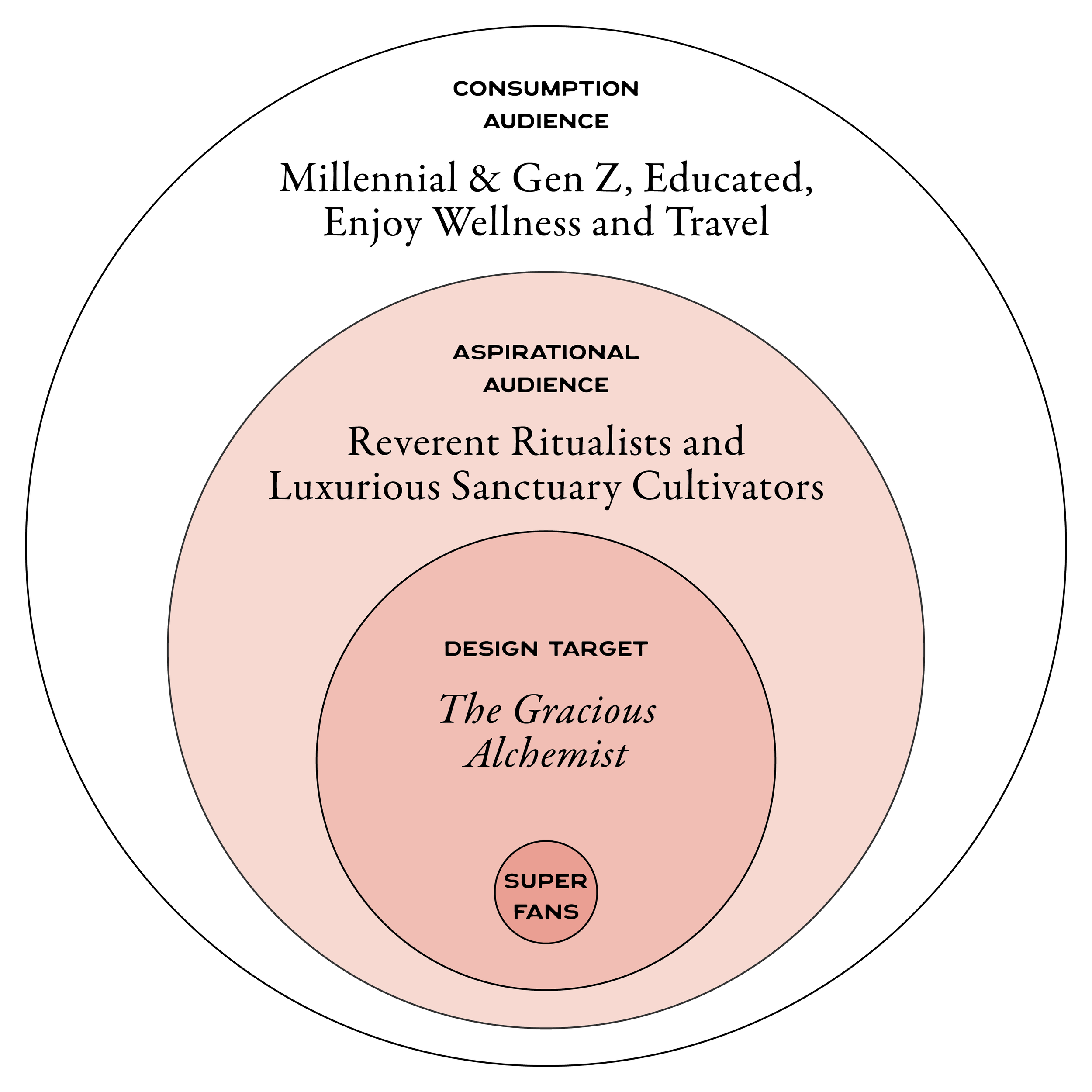 I defined Flamingo Estate’s design target, The Gracious Alchemist, to help the brand connect more deeply with its consumption audience. Rooted in research and interviews, this persona clarified the brand’s emotional tension and now serves as a strategic guide for product, storytelling, and future creative direction.