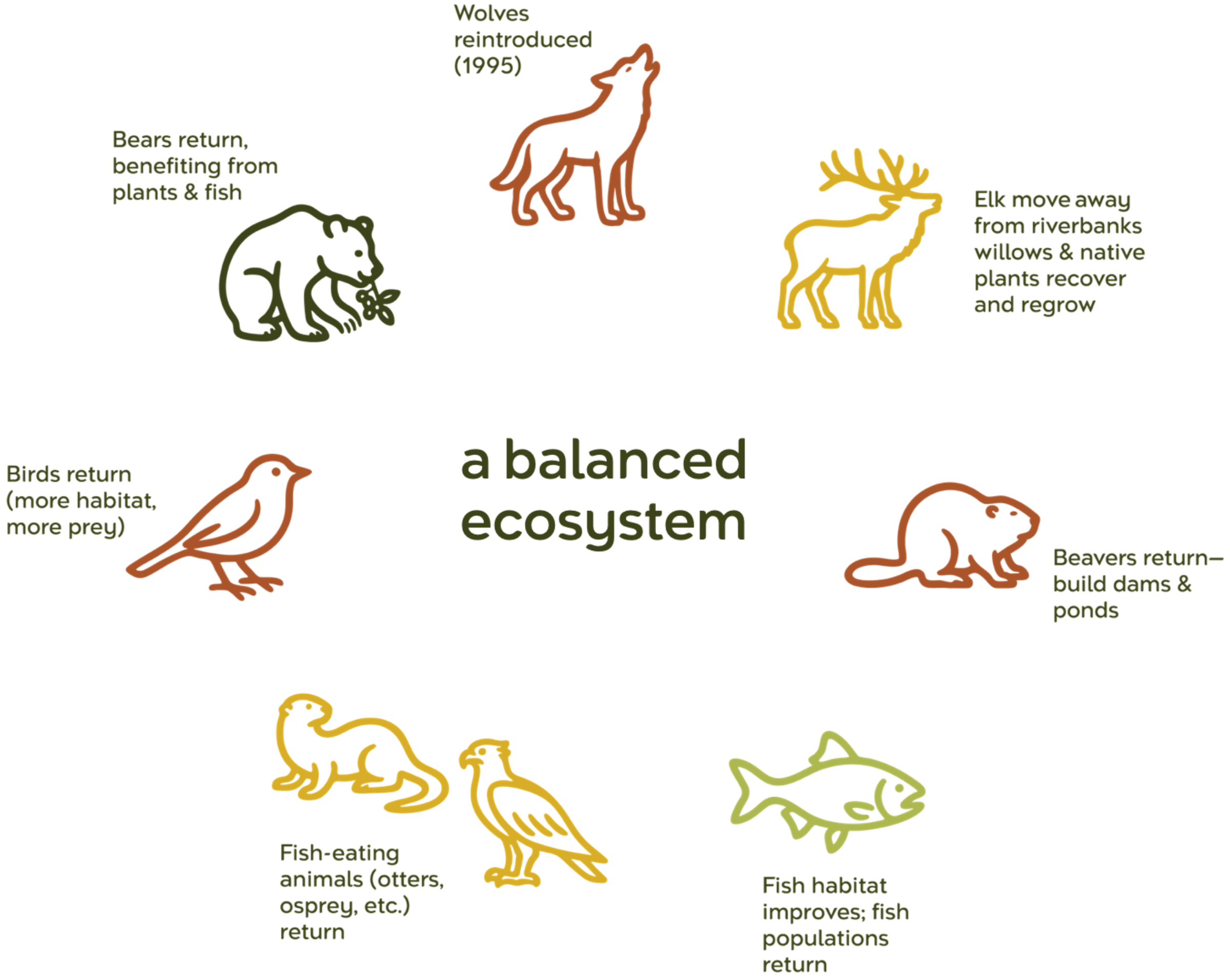 Reintroducing wolves to Yellowstone in 1995 set off a trophic cascade: elk reoriented, plants regrew, beavers built dams, fish surged, and wildlife flourished. One keystone species reshaped the ecosystem, showing how rebalancing nature can help fight climate change.